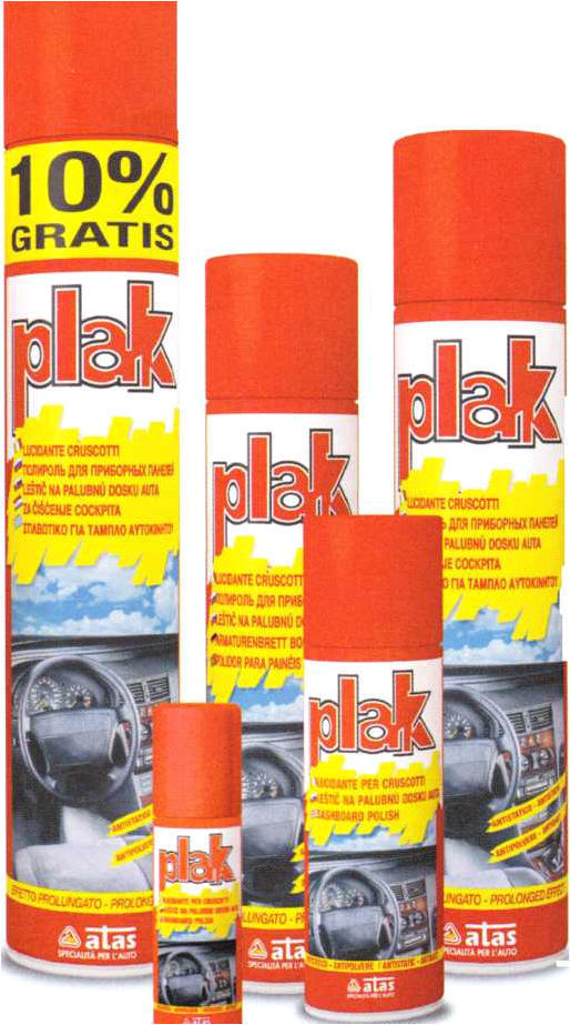 ![]() PLAK Καθαρίζει, γυαλίζει και προστατεύει το ταμπλώ και όλα τα εσωτερικά μέρη του αυτοκινήτου από πλαστικό και ξύλο. Αντιστατικό και κατά της σκόνης απομακρύνει την ταλαιπωρία του χρόνου των επιφανειών από όπου χρησιμοποιείται. Διατίθεται σε διάφορα και εξευγενισμένα αρώματα. Ενδείκνυται για το γυάλισμα των επίπλων και των επιφανειών από καουτσούκ και μάρμαρο.